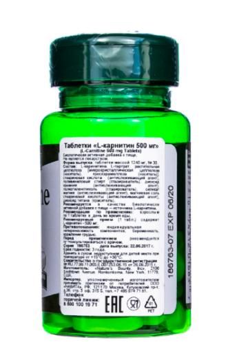 Рекомендуемый суточный прием содержит: L-карнитин (как L-карнитин L-тартрат) 500 м