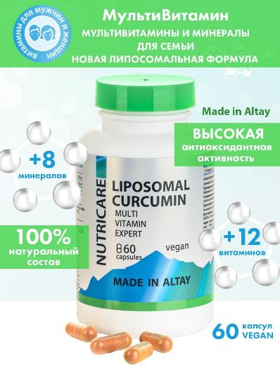 Новая липосомальная форма куркумина Multi Vitamin Expert, обладающая исключительной эффективностью, с усиленной формулой значительно повысила биодоступность куркумина и витаминов.