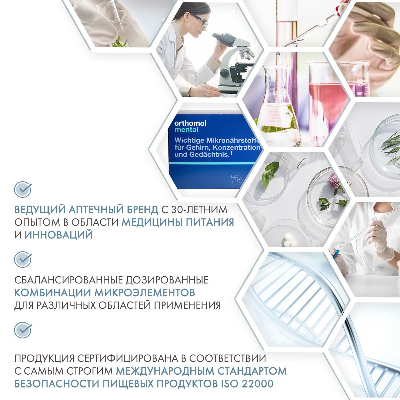 Современный ритм жизни, неправильное питание, недосып и стрессы не лучшим образом сказываются на концентрации, умственной деятельности и работоспособности. Ортомол Ментал – препарат, действие которого направлено на общее восстановление центральной нервной системы. Это приводит к улучшению памяти, поддержанию работоспособности мозга. Умственная активность зависит от уровня пантотеновой кислоты. Препарат Ортомол Ментал – ортомолекулярный, что обеспечивает поступление и усвоение необходимых витаминных компонентов. Витаминный комплекс рассчитан не только на локальное действие, но и на всеобщее поддержание организма в тонусе. Растительные экстракты и натуральные аминокислоты уберут нервное истощение и обеспечат продолжительный эффект.