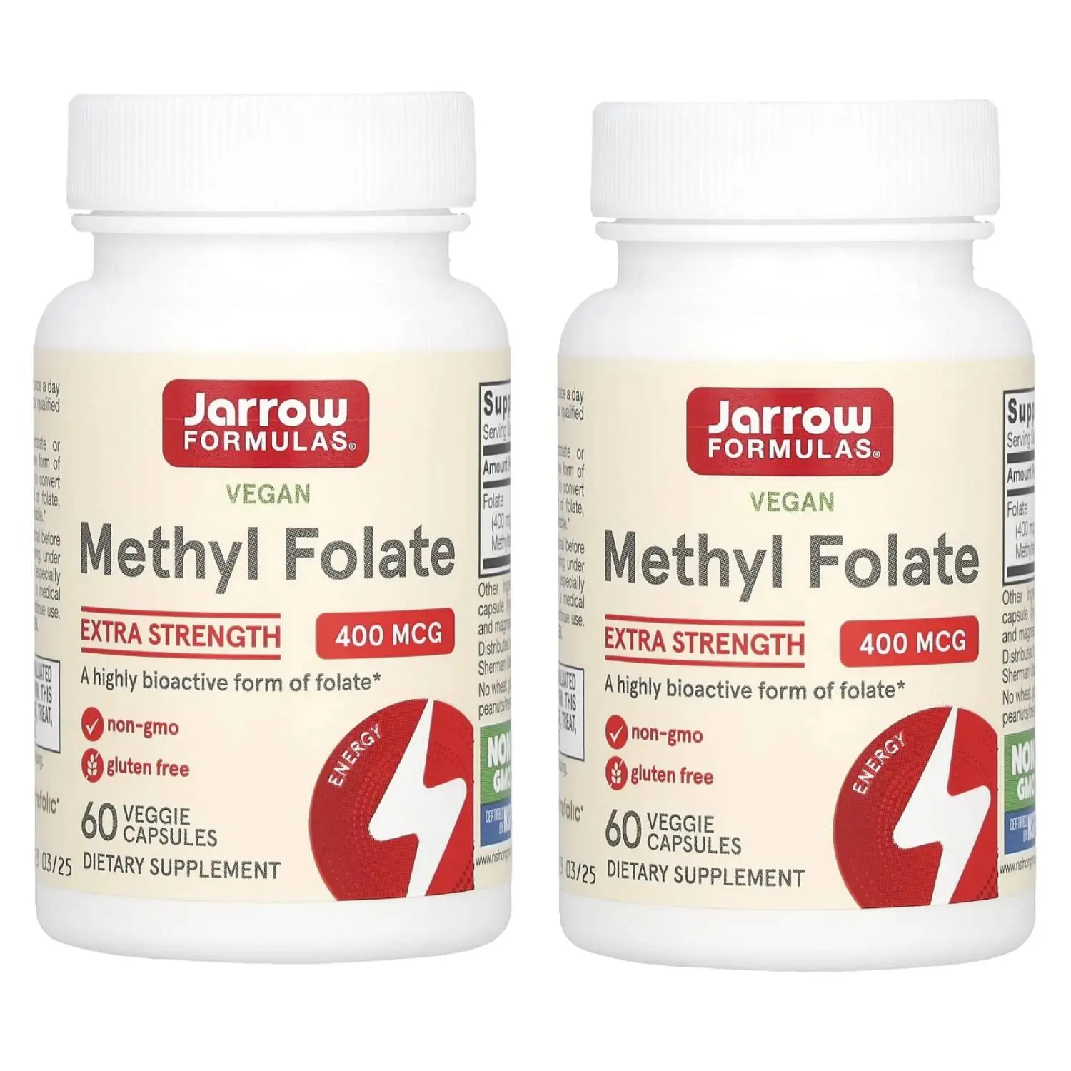В набор входят 2 упаковки Метилфолат 400 мкг, 60 капсул.