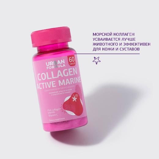 Биологически активная добавка к пище Urban Formula Collagen Active Marine / "Коллаген Актив Морской" рекомендуется в качестве биологически активной добавки к пище коллагена, дополнительного источника витамина С. Комплекс морского коллагена и витамина C способствует повышению упругости кожи, эластичности связок и уменьшению возрастных изменений.
