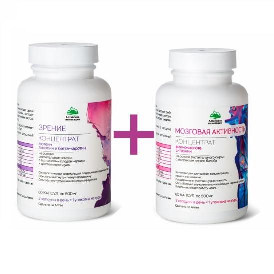 Концентрат "Зрение": черника плоды экстракт, очанка трава экстракт, цветки календулы экстракт, экстракт корнеплодов моркови, экстракт виноградных косточек, ликопин, альфа-липоевая кислота, лютеин, бета-каротин (провитамин А), капсула (желатин).