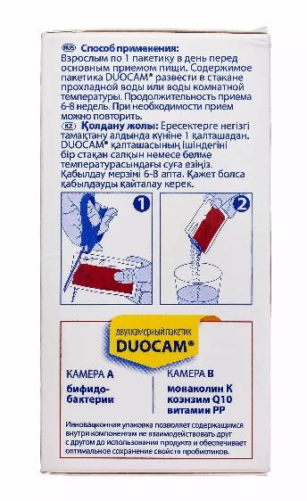 Выпускается в инновационной упаковке - двухкамерных пакетиках Duocam. Каждый пакетик разделен на две части (камеры) A и B, в камере А находятся бифидобактерии, в камере B - красный ферментированный рис, коэнзим Q10 и витамин PP, это позволяет содержащимся внутри компонентам не взаимодействовать друг с другом до использования продукта и обеспечивает оптимальное сохранение их свойств.