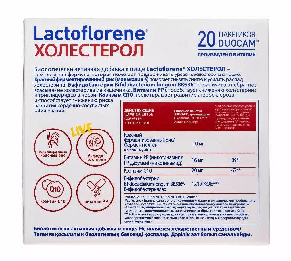 Биологически активная добавка "Холестерол", 2 х 20 пакетиков: Lactoflorene "Холестерол" – итальянская биодобавка для поддержания нормального уровня холестерина и снижения риска развития сердечно-сосудистых заболеваний. Не является лекарственным средством. Не следует использовать как замену полноценного рациона питания.