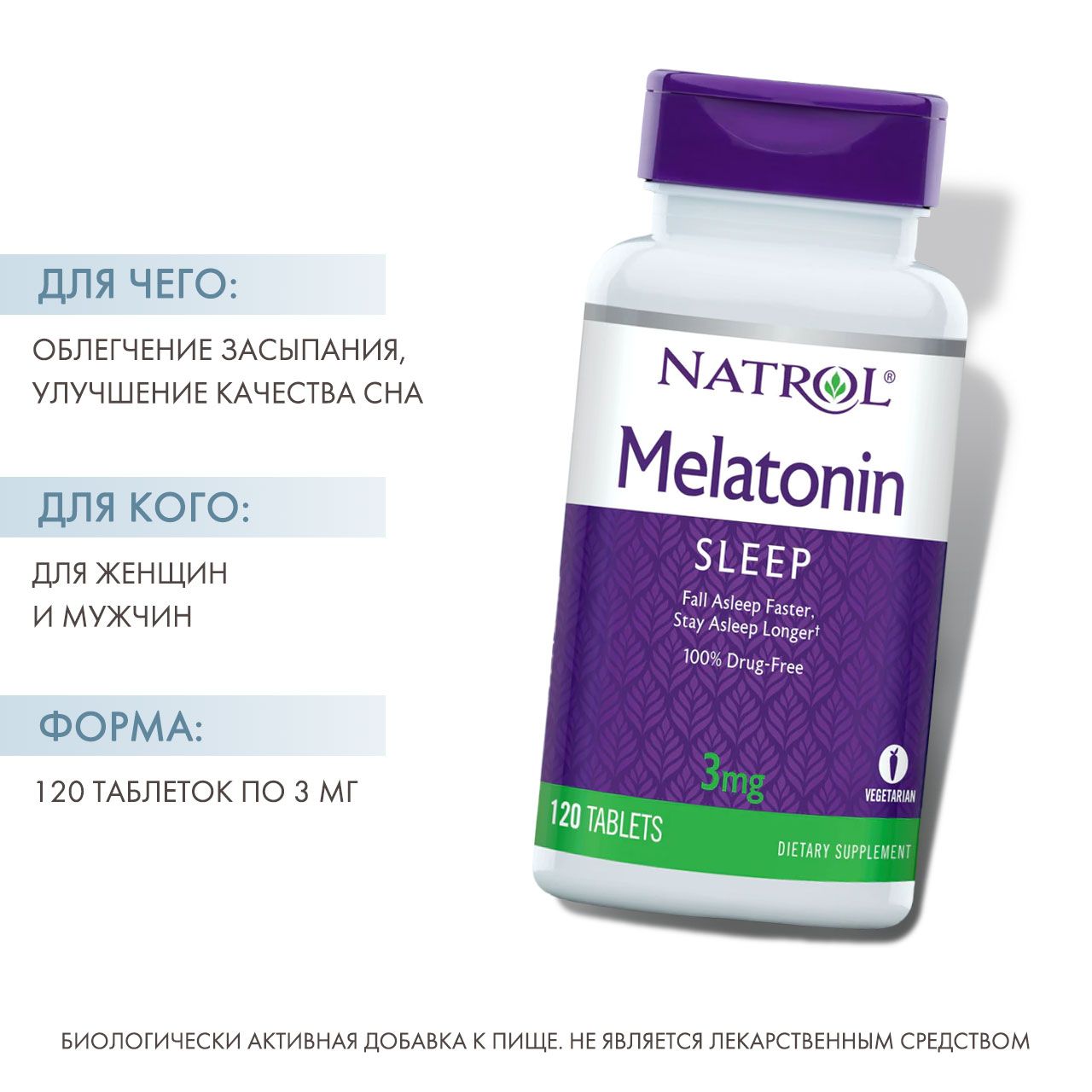Melatonin 3 мг от Natrol - это марка мелатонина № 1 в Америке, который помогает вам справиться с бессонницей, быстрее уснуть, погрузиться в более глубокий сон и проснуться отдохнувшим.