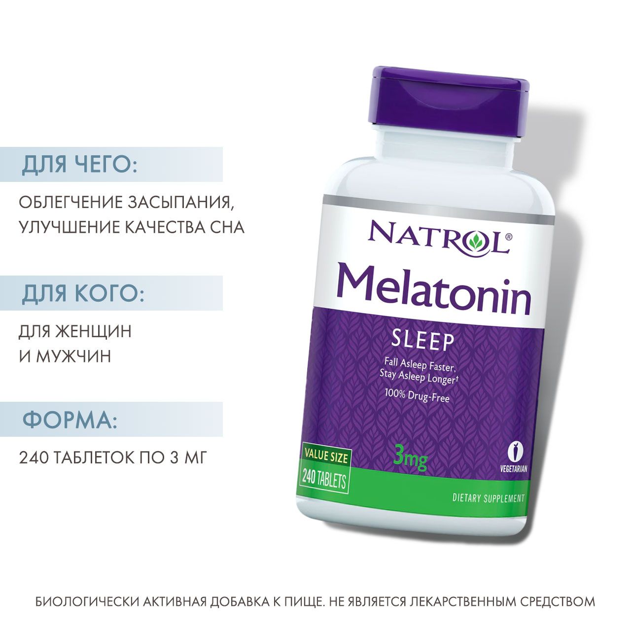 Melatonin 3 мг от Natrol - это марка мелатонина № 1 в Америке, который помогает вам справиться с бессонницей, быстрее уснуть, погрузиться в более глубокий сон и проснуться отдохнувшим.