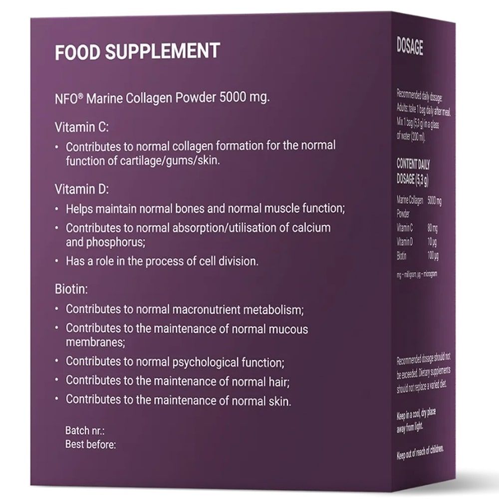 Легко усваиваемый морской коллаген из Норвегии для улучшения состояния кожи, волос и ногтей, а также для укрепления костей и повышения подвижности суставов. Все компоненты имеют комплексное воздействие на организм. Упаковка рассчитана на 14 дней приема. Не является лекарственным средством.