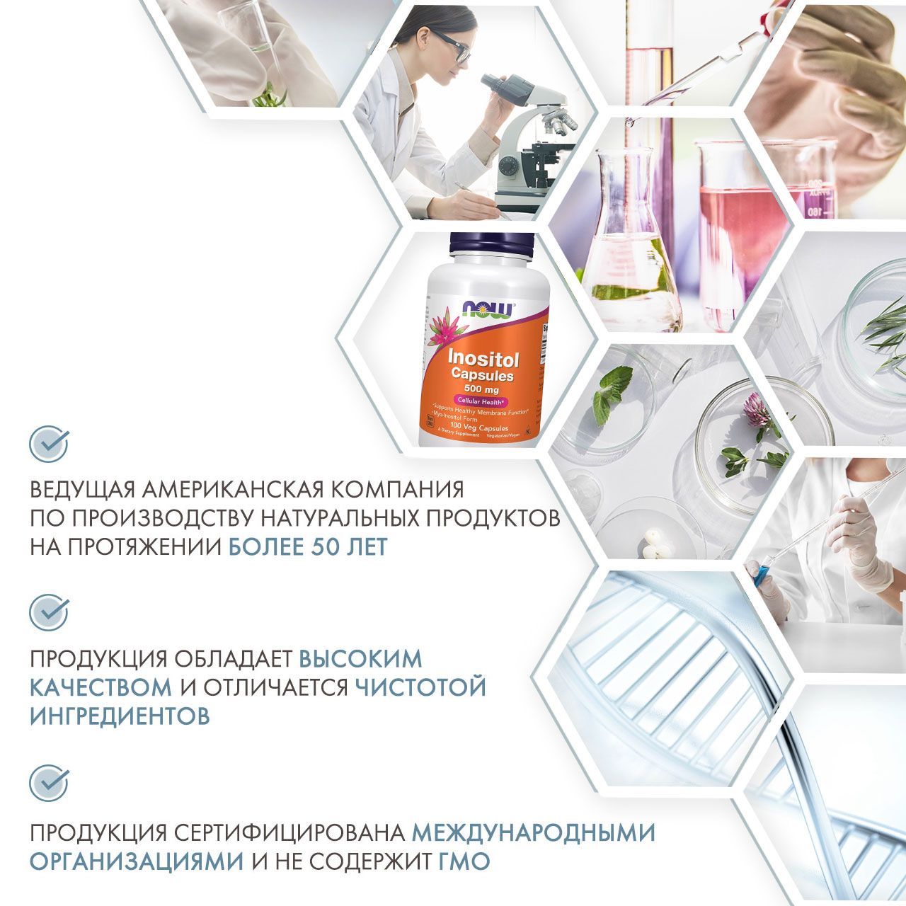 Добавка Now "Инозитол 500 мг" представлена мио-инозитолом. Он важен для правильного действия инсулина, метаболизма липидов и для поддержания клеточного баланса кальция.