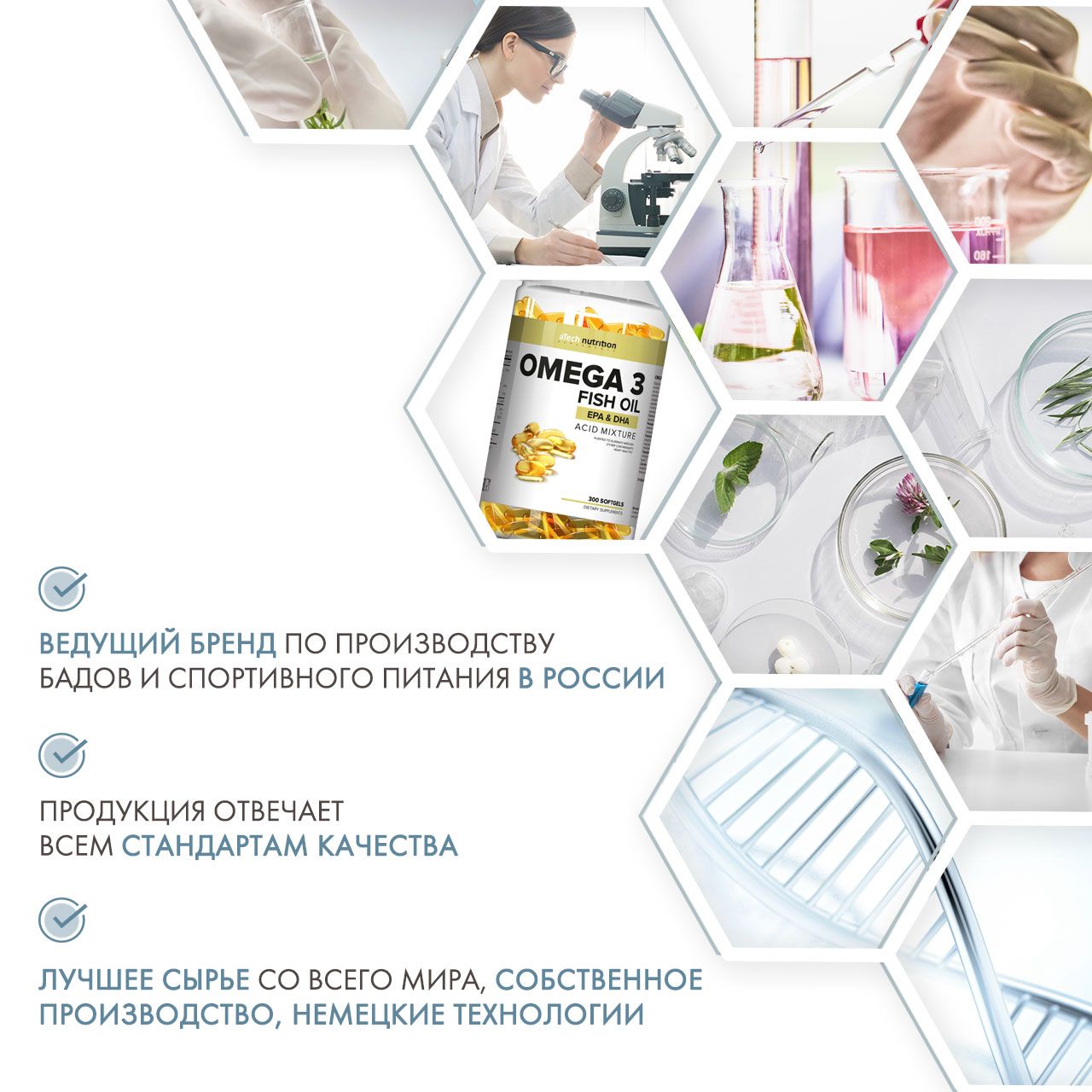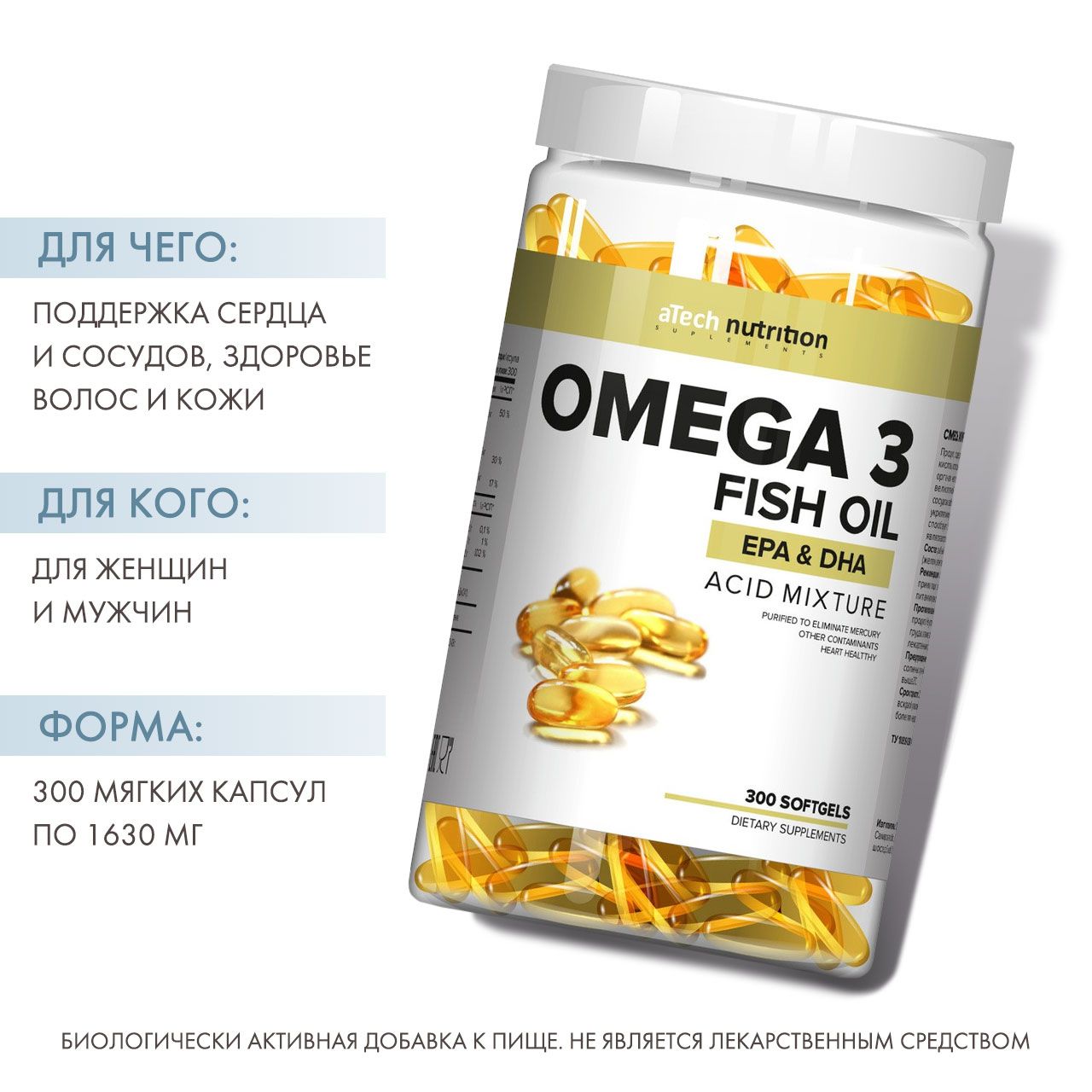 Омега 3 относятся к классу полиненасыщенных жирных кислот, которые в обязательном порядке должен регулярно получать организм человека. Ежедневное употребление омега 3 служит великолепной профилактикой воспалений суставов, сердечно-сосудистых заболеваний, снижает риск онкологических заболеваний, укрепляет иммунитет, улучшает зрение, состояние кожи и волос, а так же способствует более быстрому процессу жиросжигания!
