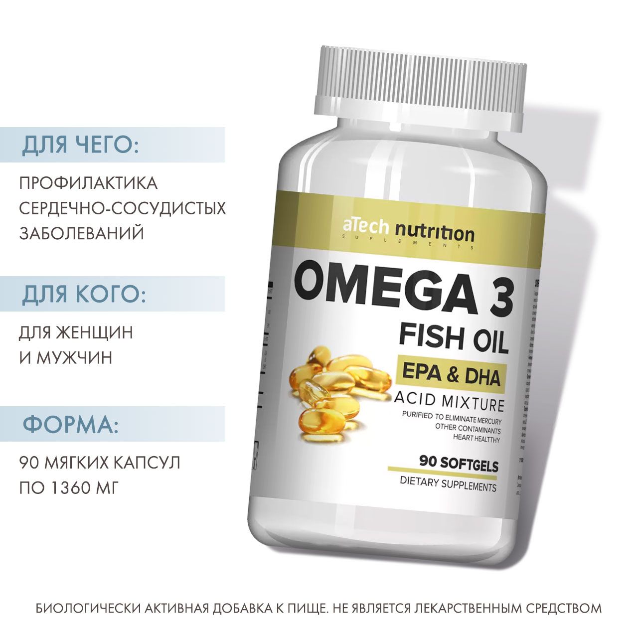Омега 3 относятся к классу полиненасыщенных жирных кислот, которые в обязательном порядке должен регулярно получать организм человека. Ежедневное употребление омега 3 служит великолепной профилактикой воспалений суставов, сердечно-сосудистых заболеваний, снижает риск онкологических заболеваний, укрепляет иммунитет, улучшает зрение, состояние кожи и волос, а так же способствует более быстрому процессу жиросжигания!