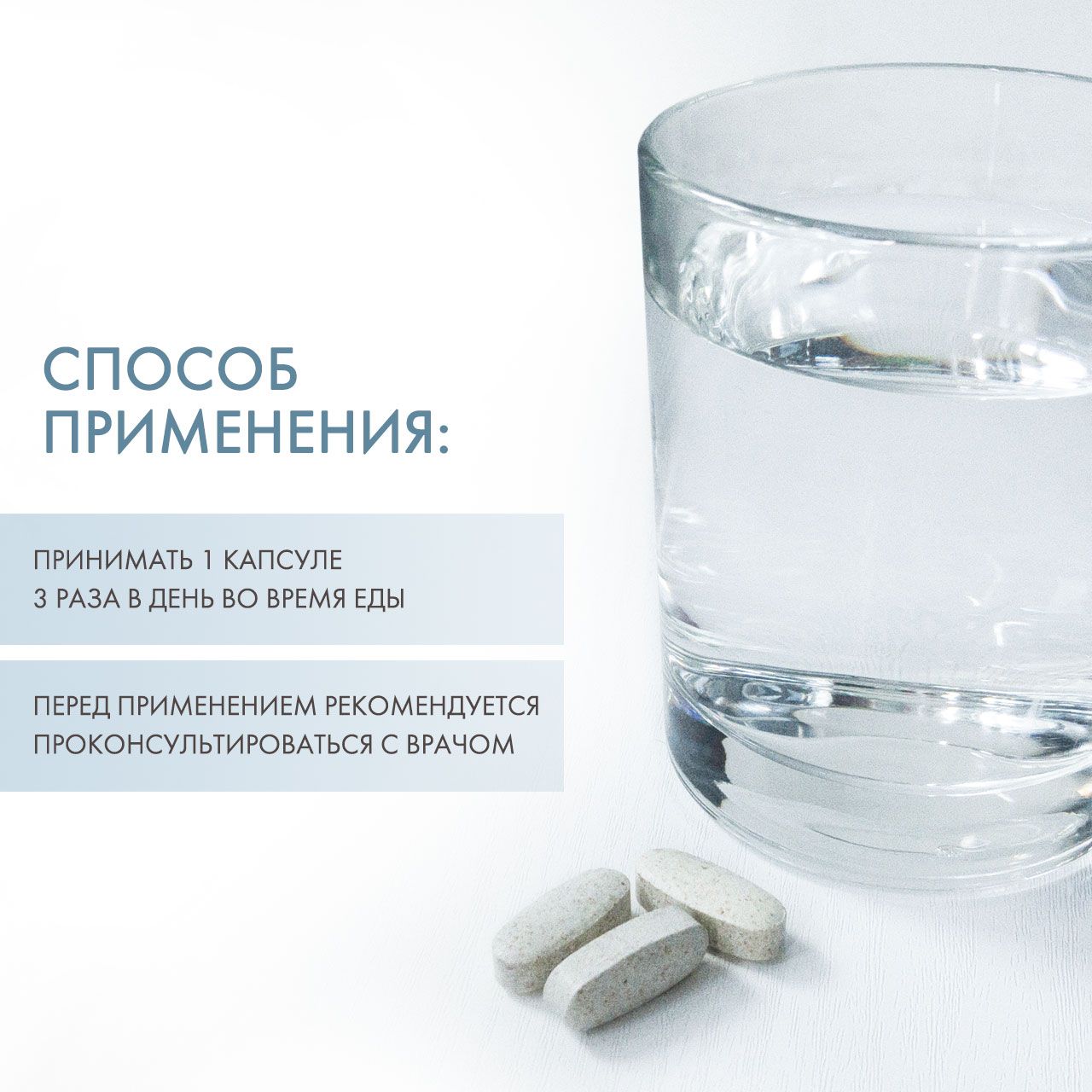 Принимать по 1 порции (1 капсула) 3 раза в день, во время приема пищи или в соответствии с вашей индивидуальной программой питания или рекомендациями врача.