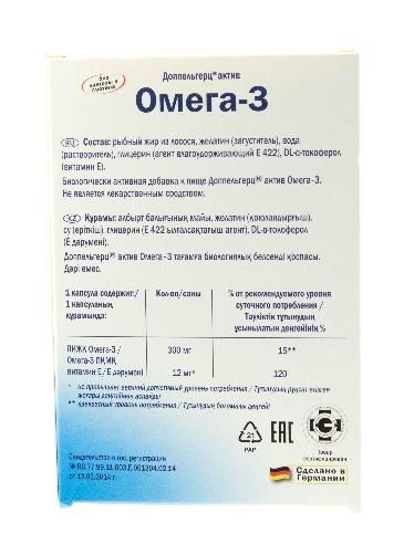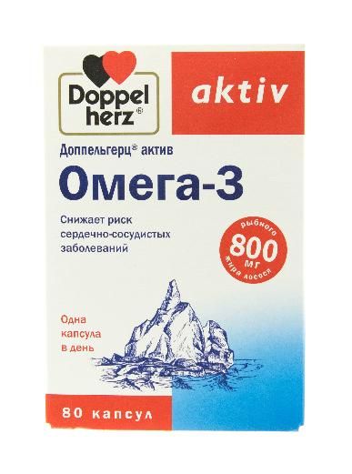 Комплекс высокоочищенных полиненасыщенных жирных кислот (ПНЖК) Омега3 и витамина Е Достаточная физическая активность и здоровое питание являются важными составляющими здорового образа жизни. Для здоровья сердца особенно важным является правильное питание, ограничивающее поступление в организм жиров и холестерина и потребление необходимых полиненасыщенных жирных кислот. Сегодня известно, что полиненасыщенные жирные кислоты Омега-3 являются важными компонентами здорового питания для сердца: они поддерживают баланс между содержанием холестерина и триглицеридов в организме человека. Доппельгерц® актив Омега-3, полученный из лососевых рыб, — натуральный источник полиненасыщенных жирных кислот. Другой компонент комплекса — витамин E — обеспечивает баланс между уровнем холестерина и триглицеридов в крови и снижает риск развития сердечно-сосудистых заболеваний. Комплекс полиненасыщенных жирных кислот Омега-3 и витамина Е оказывает общеукрепляющее, антиоксидантное, гиполипидермическое, мембраностабилизирующее, антиагрегатное, гипотензивное, противовоспалительное и иммунокорректирующее действие на организм человека. Показания к применению: нормализует липидный обмен и снижает уровень холестерина; предохраняет клетки и кровеносные сосуды от отложений холестерина; повышает иммунитет организма; нормализует мозговое кровообращение и улучшает работу мозга; содержит витамин Е для защиты клеток от токсичного воздействия свободных радикалов; снижает риск развития сердечно-сосудистых заболеваний и атеросклероза.