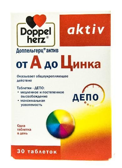 Комплекс витаминов и минеральных веществ – необходим организму для поддержания и улучшения его функциональной активности. Может применяться: для предупреждения дефицита витаминов и минеральных веществ, при состояниях, сопровождающихся повышенной потребностью в витаминах, макро- и микроэлементах (стресс, переутомление, период восстановления после перенесенных заболеваний), для повышения умственной и физической работоспособности, при неполном или несбалансированном питании. Таблетки – ДЕПО обеспечивают медленное и постепенное высвобождение компонентов, что гарантирует их максимальную усвояемость клетками организма.