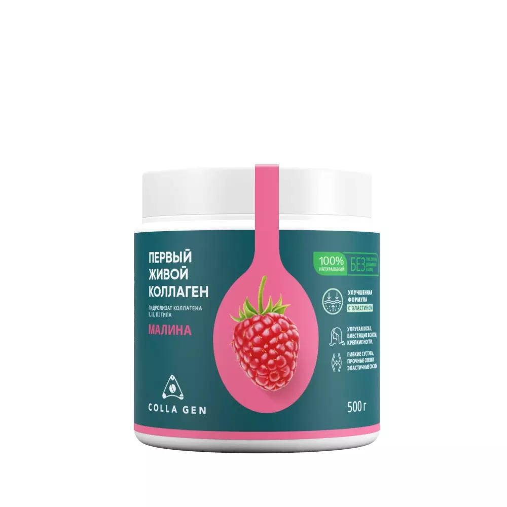 В состав входит 100% натуральный сок малины, обладающий высокой антиоксидантной активностью, способствует выведению токсинов, активизирует защитные силы организма, является источником витаминов группы В, А и С. Улучшенная технология экстракции позволяет получить гидролизат коллагена, обогащенный природным эластином, а новая технология фильтрации - продукт с низким содержанием жиров.