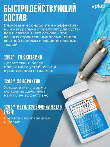 Со временем наш опорно-двигательный аппарат требует дополнительной поддержки. Глюкозамин хондроитин VPLAB (Glucosamine, Chondroitin, MSM) – эффективный натуральный препарат для суставов и связок.