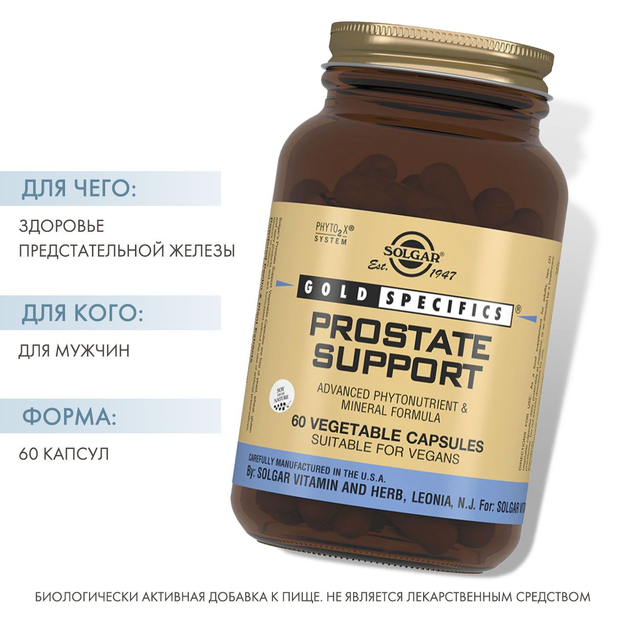 Капсулы Простата плюс разработаны американской компанией Solgar. Является биологически активной добавкой (БАД). Назначение - содержит экстракт плодов пальмы Сереноа, который уменьшает отек и воспаление предстательной железы, способствует уменьшению боли и жжения при мочеиспускании, а так же уменьшает императивные позывы к мочеиспусканию. Экстракт коры сливы Африканской предупреждает образование рубцовой ткани в простате, уменьшает воспалительные процессы, способствует уменьшению функциональных нарушений мочеиспускания при гиперплазии предстательной железы. Масло семян тыквы устраняет болевой синдром у больных простатитом, способствует нормализации потенции.
