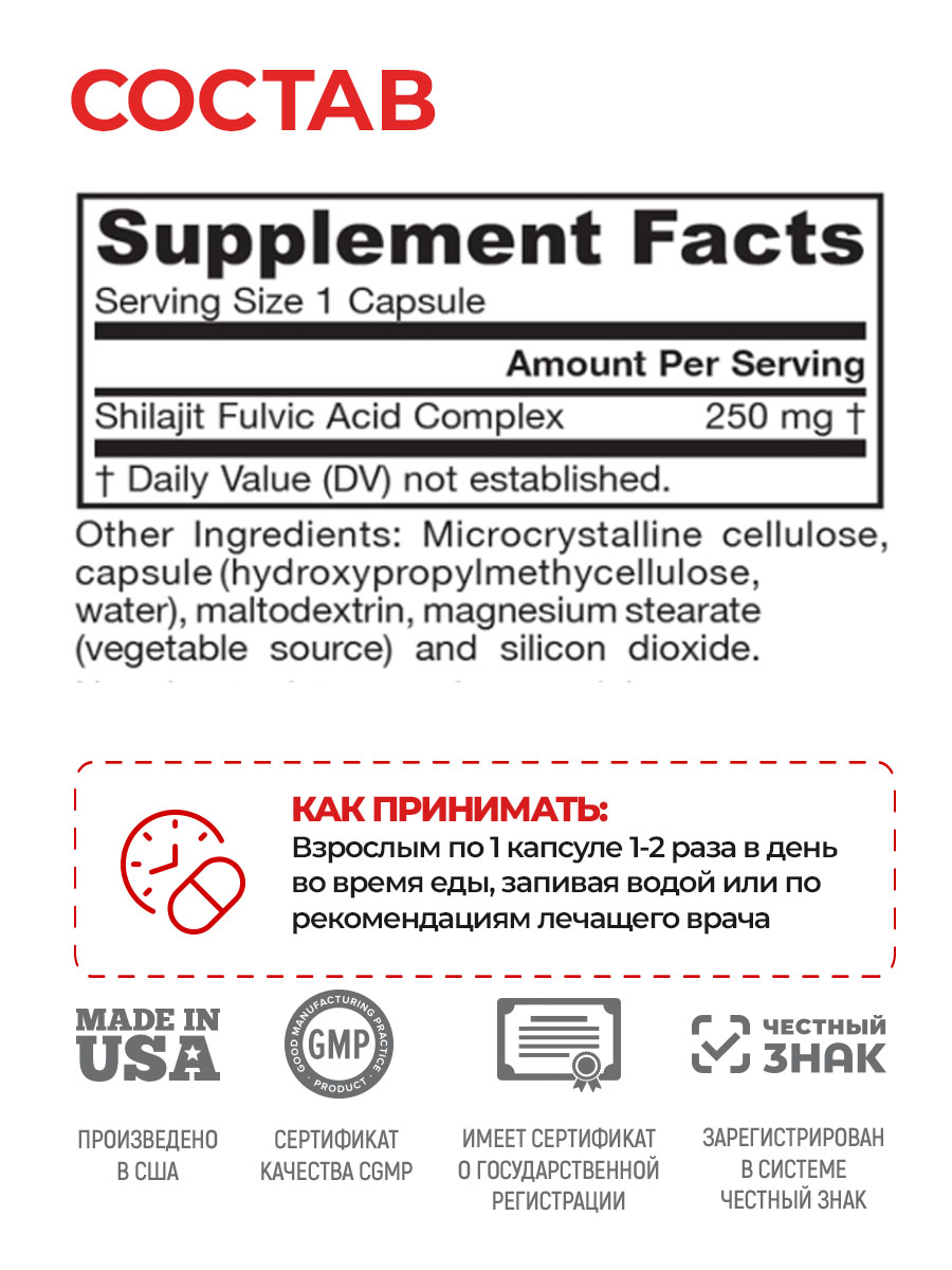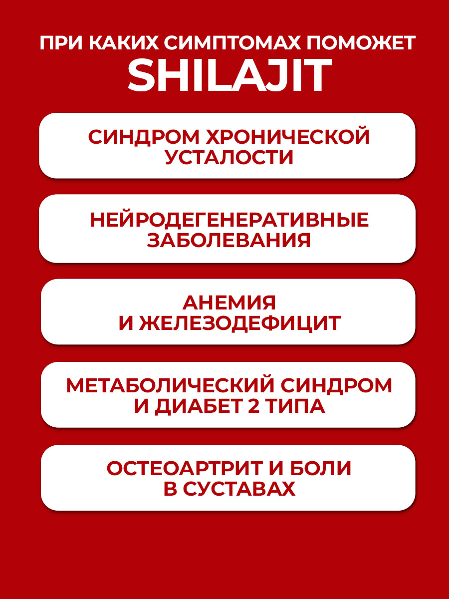 Шиладжит — природное вещество, традиционно используемое для поддержки энергии, выносливости и общего здоровья. Фульвовая кислота выступает как носитель микроэлементов и антиоксидантный компонент. Обеспечивает улучшение общего самочувствия за счет комплексного воздействия на клеточном уровне и поддержки энергетического баланса. Комплекс фульвовой кислоты Шиладжит в сочетании с коэнзимом Q10 в митохондриях поддерживает выработку энергии в тканях головного мозга и мышц во время физических упражнений.