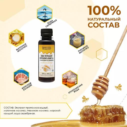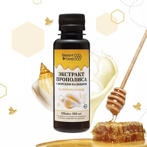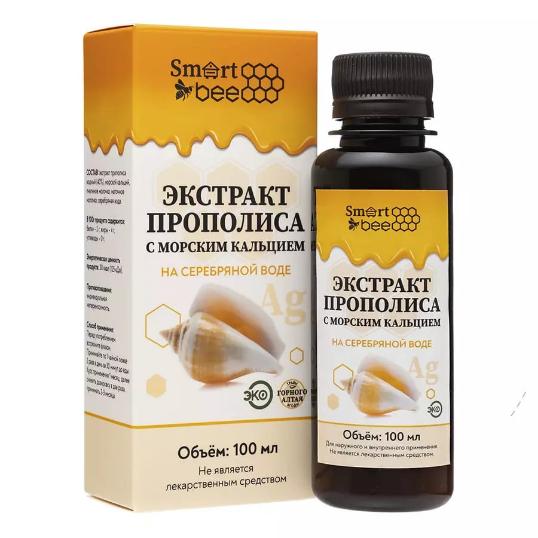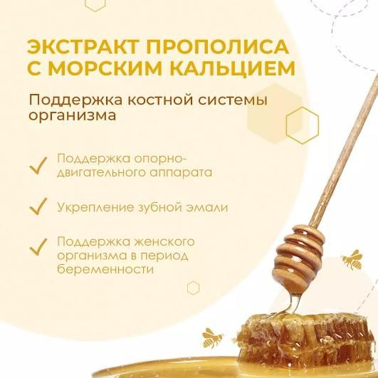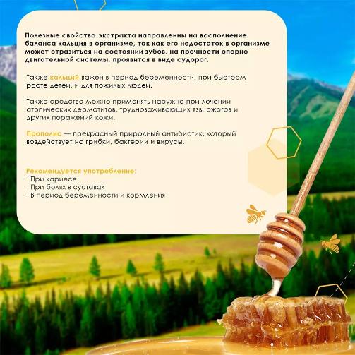 Состав: экстракт прополиса водный (30%), морской кальций, маточное молочко, серебряная вода.