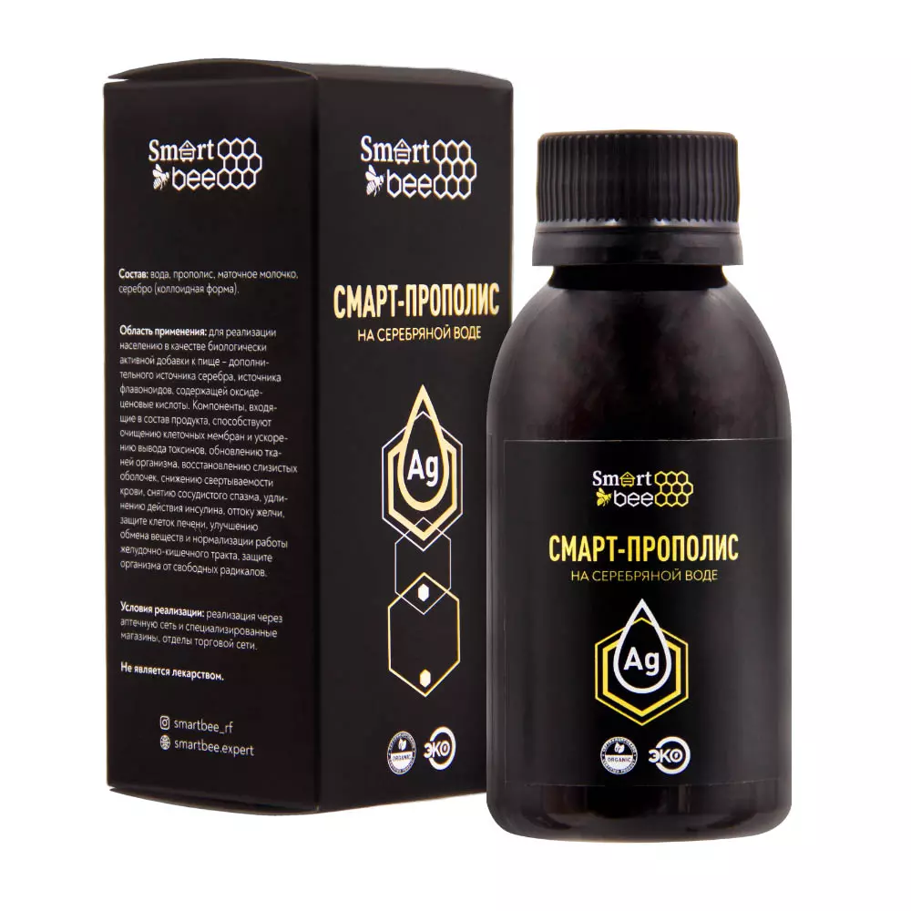 Состав: вода, прополис (30%), маточное молочко, биосеребро (коллоидная форма серебра).