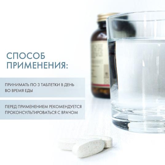Взрослым принимать по 3 таблетки в день во время еды. Противопоказания: Индивидуальная непереносимость компонентов продукта, беременность, кормление грудью.