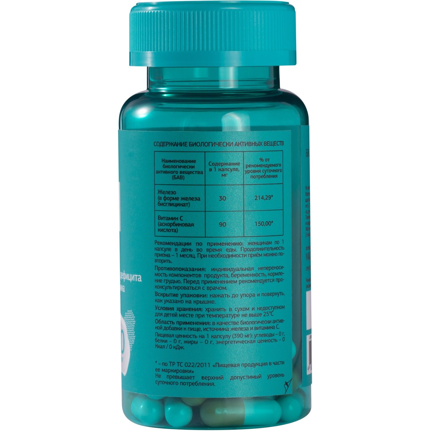 Содержание в 1 капсуле: железо – 30 мг, витамин C – 90 мг.