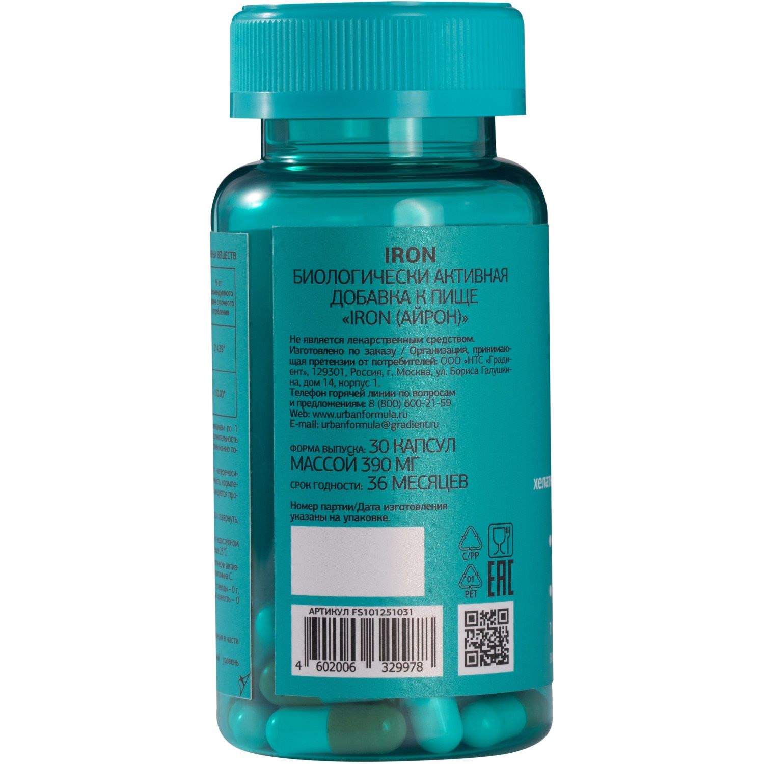 Комплекс двухвалентного железа Iron от Urban Formula для хорошего самочувствия, красивых волос и ногтей. Подходит для восполнения дефицита при низком уровне гемоглобина. Курс поможет укрепить волосы и ногти, вернуть коже увлажненность и ухоженный вид, повысить выносливость и общую работоспособность организма.