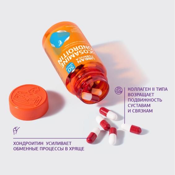 Состав: глюкозамина сульфат, хондроитинсульфат, желатин (оболочка капсулы), коллаген, антислеживающий агент кальция стеарат, красители пищевые: диоксид титана, понсо, оксид железа красный (оболочка капсулы).