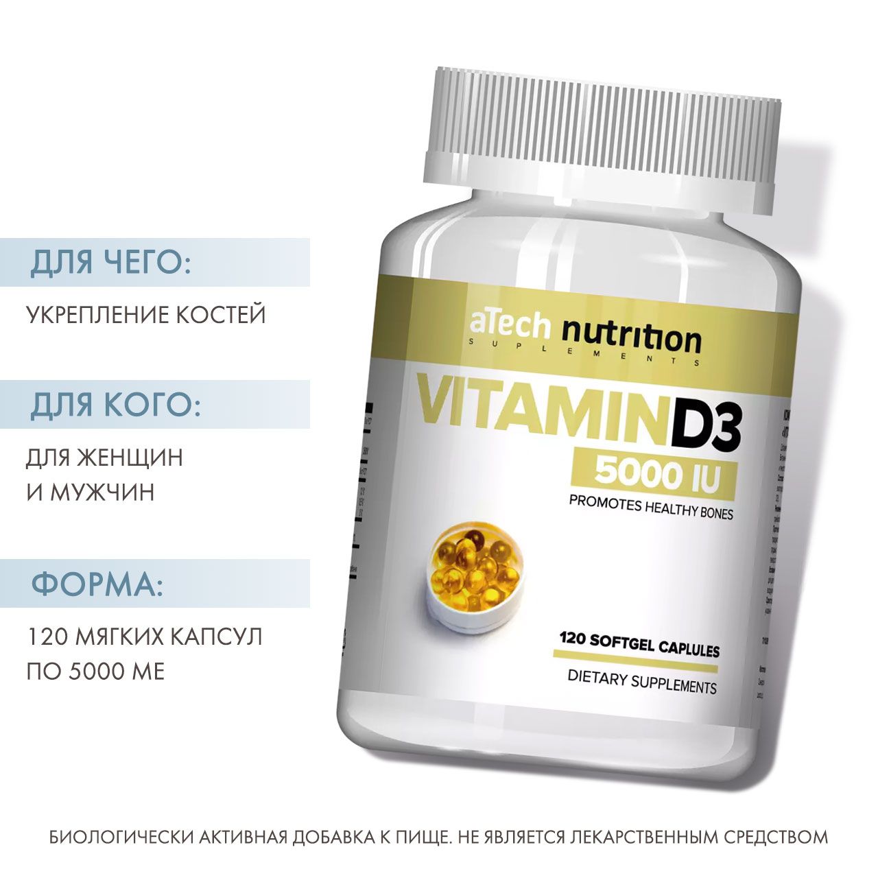 Витамин Д3 5000 МЕ 700 МГ, 120 мягких капсул