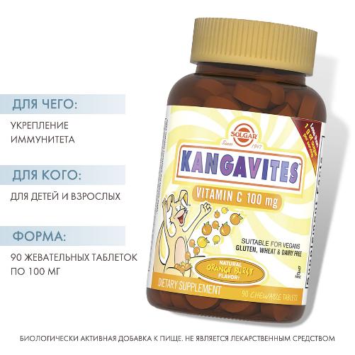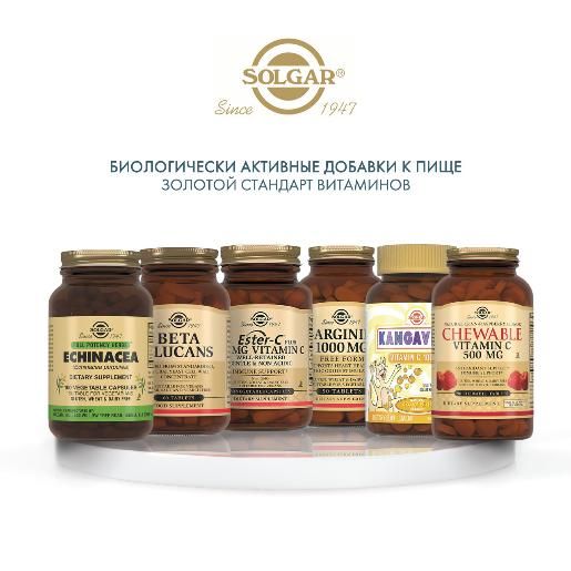 Таблетки с содержанием витамином С и вспомогательными веществами (сахароза, фруктоза, МКЦ, натуральные ароматизаторы, морковь (цвет), маннит, ксилит, двуокись кремния, каррагенан, тропическая вишня (плоды), ксантановая камедь, стеариновая кислота, стеарат магния, шиповник) разработаны американской компанией Solgar. Является биологически активной добавкой. Назначение - оказывает благоприятное воздействие на весь организм, его работу и функции.