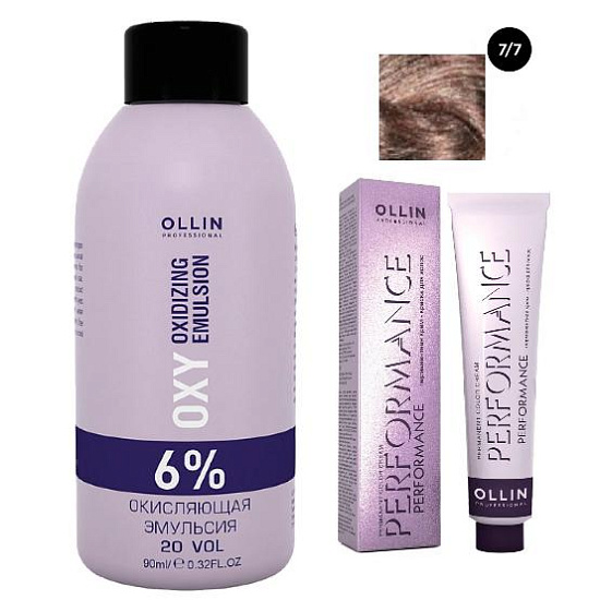 Набор "Перманентная крем-краска для волос Ollin Performance оттенок 7/7 русый коричневый, 60 мл + Окисляющая эмульсия Oxy 6%, 90 мл"