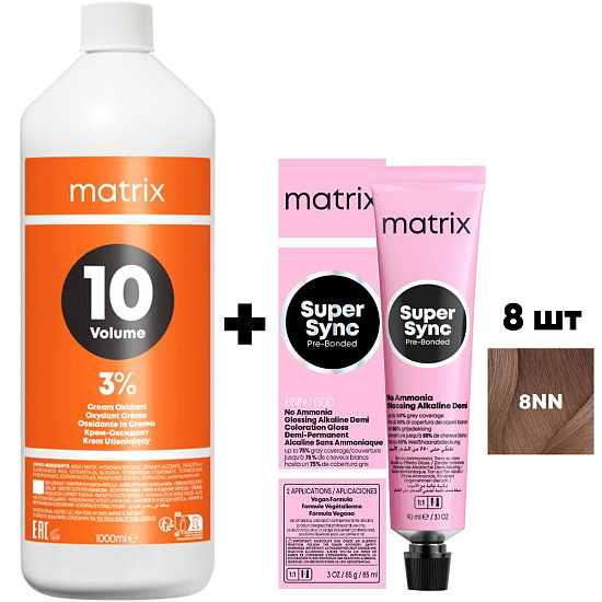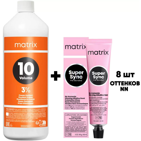 Набор для окрашивания: краситель Super Sync Pre-Bonded оттенки NN 8х90 мл + оксид 3% 1 л