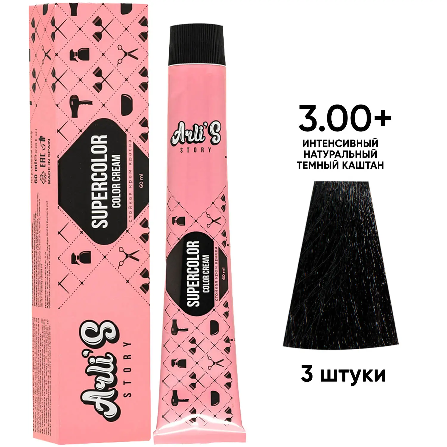 Профессиональная краска для волос оттенок 3.00+, 3 шт х 60 мл