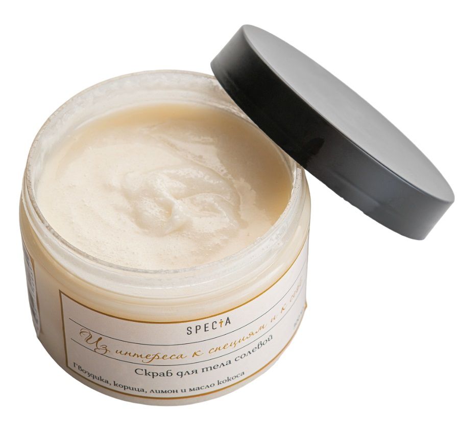 2. Скраб для тела солевой с гвоздикой, корицей и лимоном, 200 г