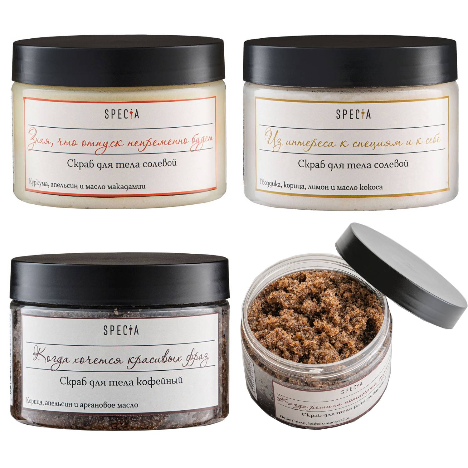 Подарочный набор скрабов для гурманов "Алый. На все случаи жизни и под любое настроение", 4 средства
