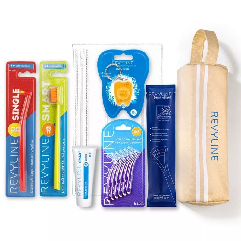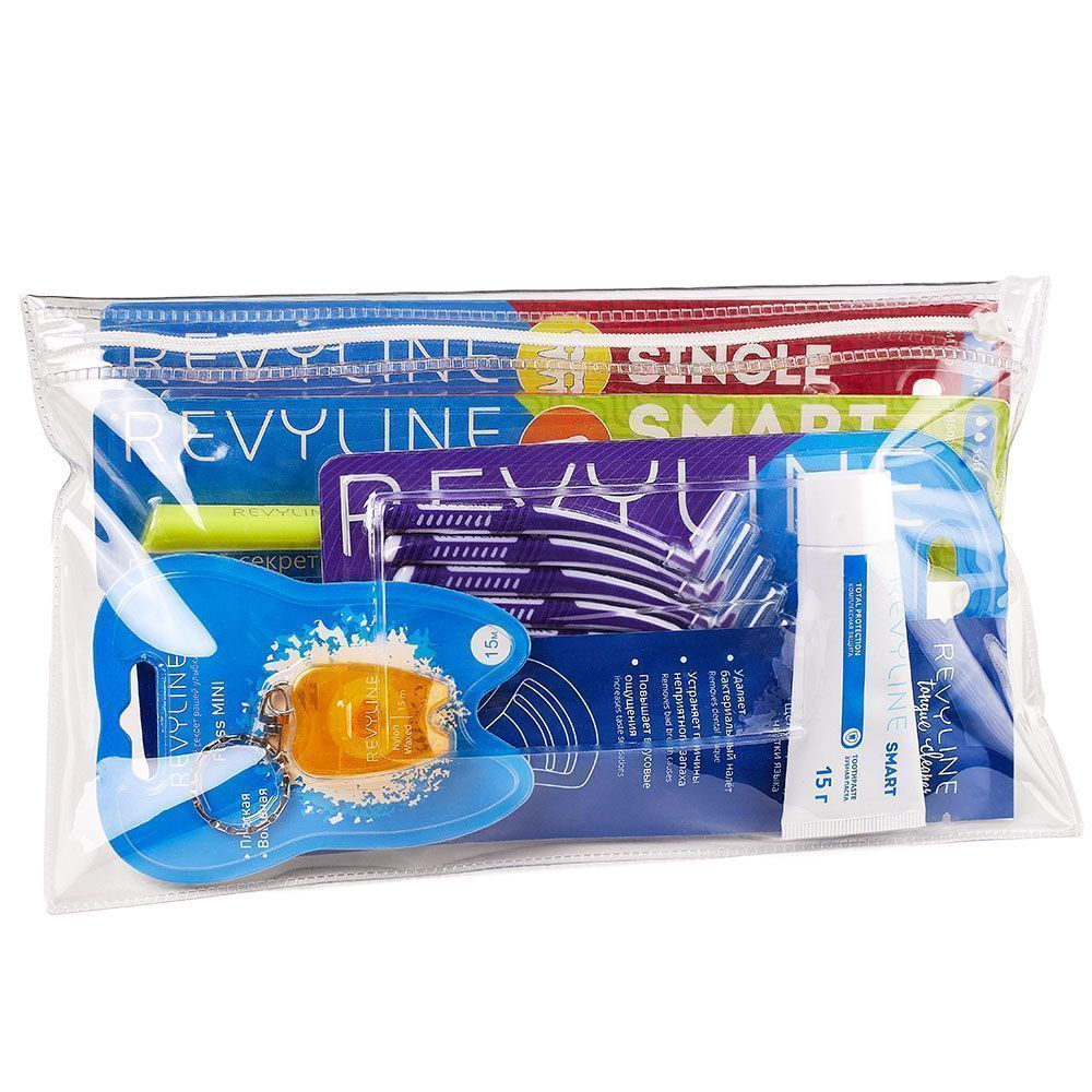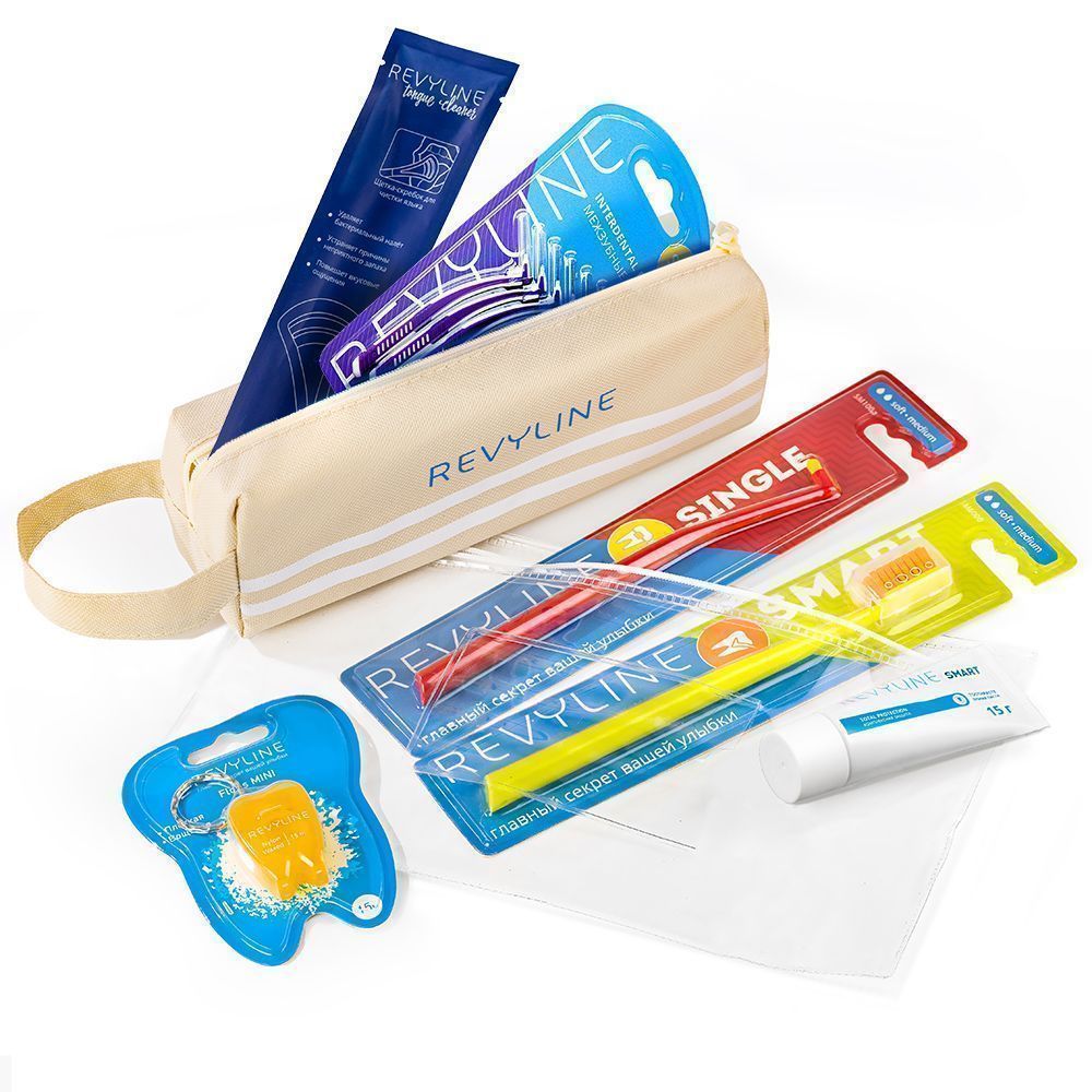 Профилактический набор Revyline – это самые необходимые аксессуары для ухода за полостью рта, собранные в компактном дорожном пенале из водоотталкивающей ткани. Удобно брать с собой в дорогу, обеспечивая качественную гигиену, где бы вы ни были.