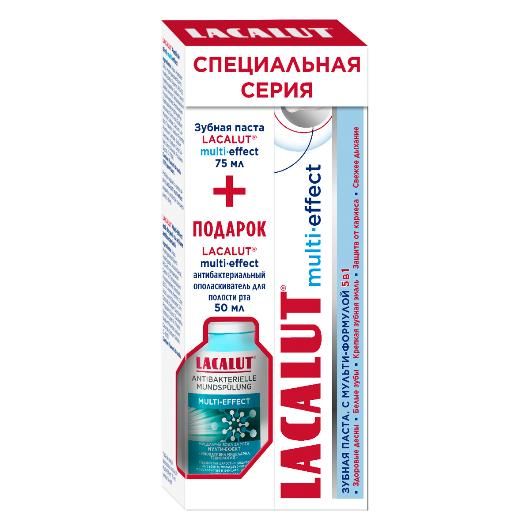 Зубная паста Lacalut multi-effect с мульти-формулой 5-в 1 обеспечивает превосходную всестороннюю защиту зубам: