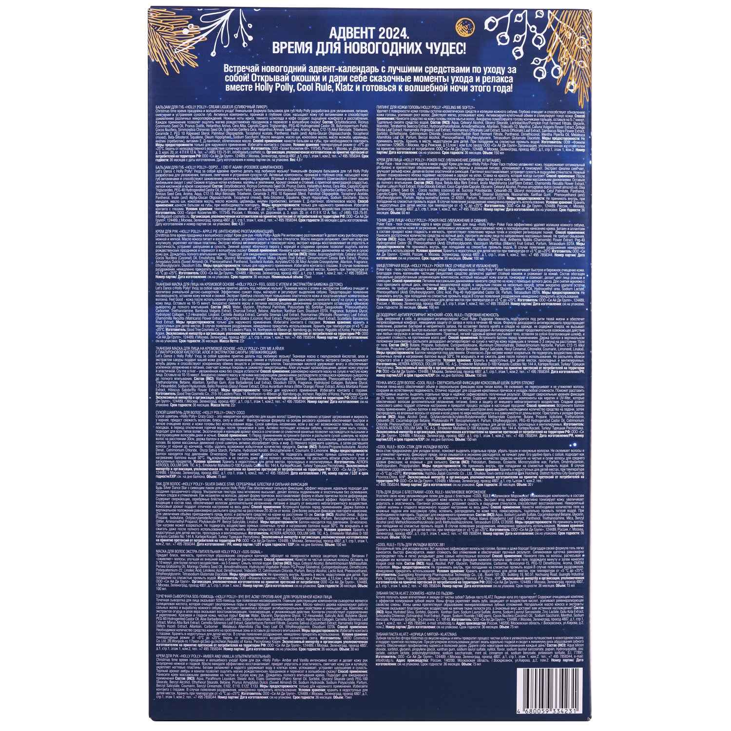Пришло время для новогодних чудес! Встречай адвент-календарь с классными средствами по уходу за собой! Открывай окошки, дари себе моменты настоящего ухода и релаксации, наслаждайся и готовься к волшебной ночи вместе с Holly Polly, Cool Rule и Klatz!
