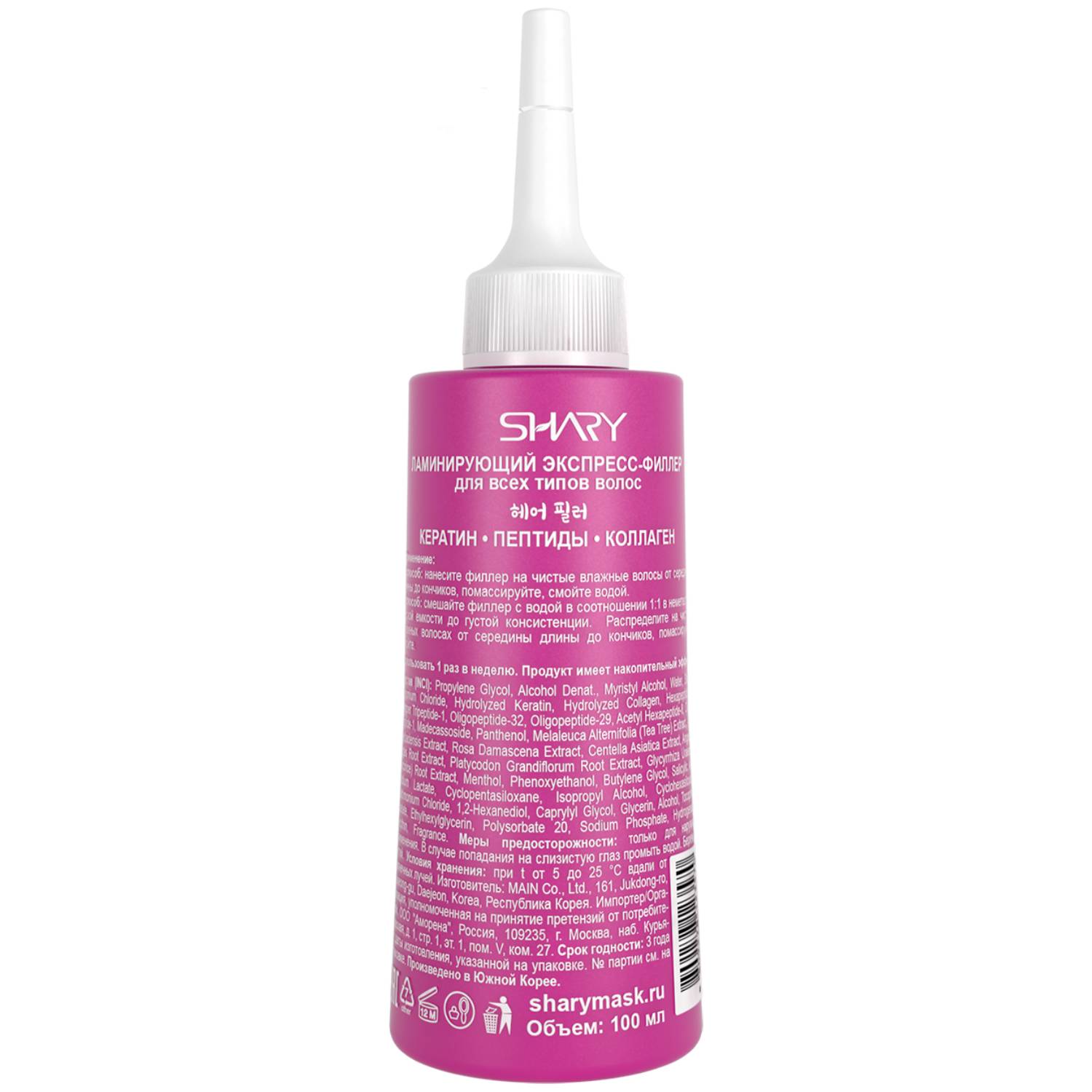 Маска: после использования шампуня нанесите маску-филлер на влажные чистые волосы, оставьте на 5-7 минут, затем смойте теплой водой.