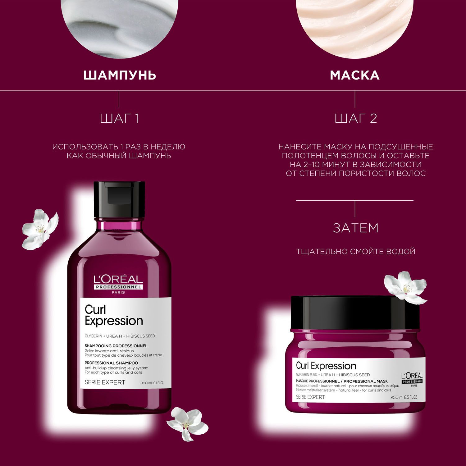 Профессиональный очищающий шампунь Curl Expression с текстурой геля бережно устраняет загрязнения, обеспечивает увлажнение, не вызывая зуда или повреждения волос. Формула обогащена глицерином, Urea H и экстрактом семян гибискуса.
