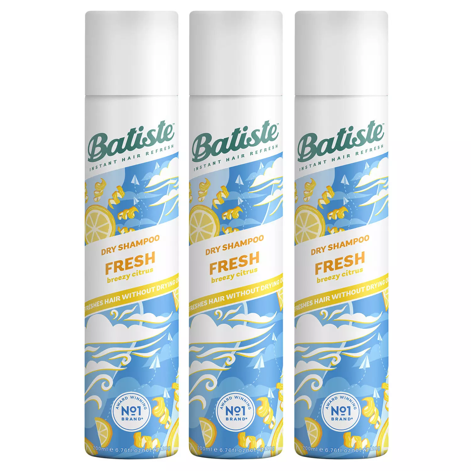 В набор входят три флакона сухого шампуня для волос Fresh с ароматом свежести, 200 мл