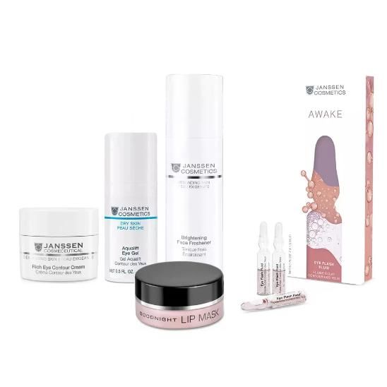 Крем для век: экстракт овса, сахар инвертный, гиалуроновая кислота (с длинной и короткой цепью), витамин А пальмитат, масло ореха макадамии, масло семян подсолнечника, масло ши, изостеарил изостеарат, бисаболол.