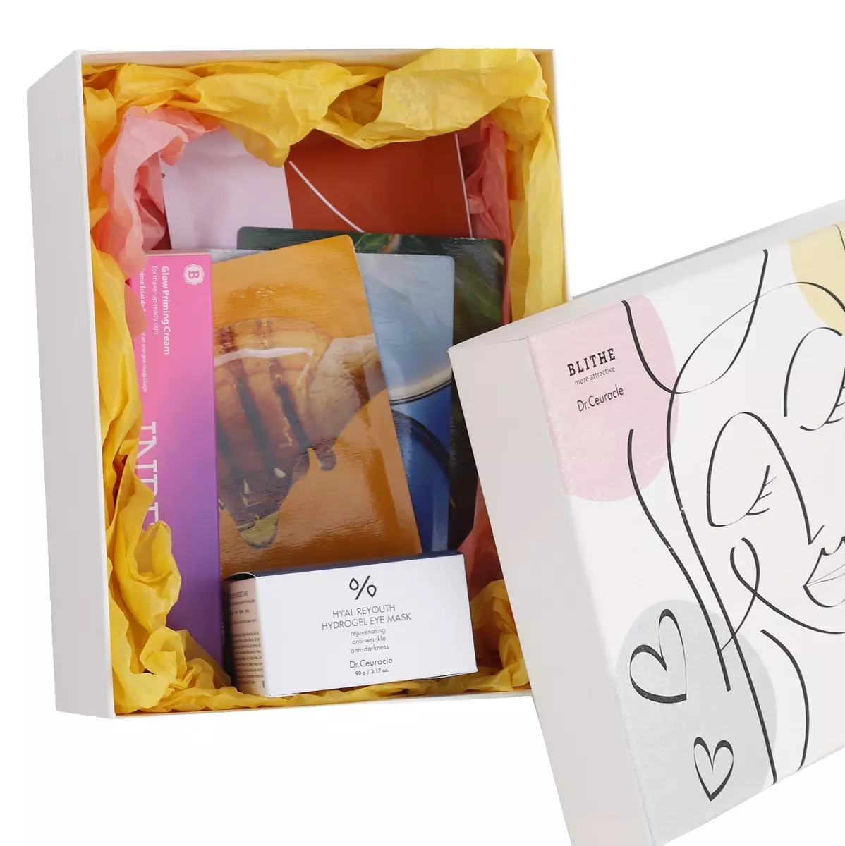 Тканевая маска с гиалуроновой кислотой и патчи: комплекс из 6 видов разномелекулярной гиалуроновой кислоты, ниацинамид, ацетилтетрапептид-5, гидролизованный коллаген.