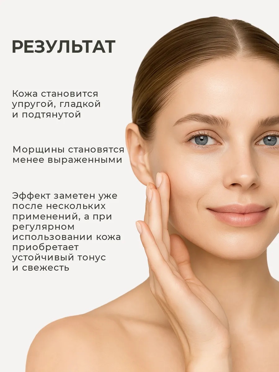 Обладает мгновенным эффектом и накопительным действием - разглаживает, уменьшает глубину и количество морщин, восстанавливает тургор и укрепляет защитный барьер, выравнивает тон, сохраняет мягкость и молодость кожи. Подходит для ежедневного применения. Возрастные ограничения 18+