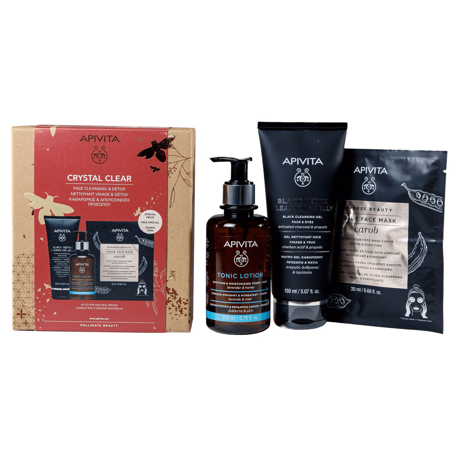 Тоник: aqua/water/eau**, glycerin, ppg-26-buteth-26, aqua/water/eau, mel/honey/miel, propolis extract, olea europaea (olive) leaf extract, rosa canina fruit* extract, betaine, panthenol, citrus aurantium dulcis (orange) peel oil*, lavandula angustifolia (lavender) oil*, pelargonium graveolens flower oil*, allantoin, sodium hyaluronate, tocopheryl acetate, peg-40 hydrogenated castor oil, hydroxyacetophenone, tetrasodium glutamate diacetate, citric acid, parfum/fragrance