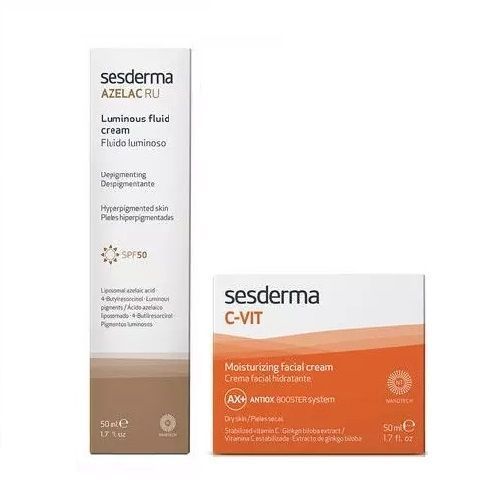 Флюид: липосомированная азелаиновая кислота, 4-бутилрезорцинол, липосомированная транексамовая кислота, витамин С, экстракт ромашки, физические и химические УФ-фильтры, факторы роста растительного происхождения.