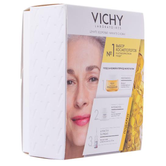 Дневной крем: вулканическая вода Vichy, обогащенная 15 минералами, Проксилан, Экстракт Кассии, Витамин B3 и Омега 3-6-9 из растительных масел.