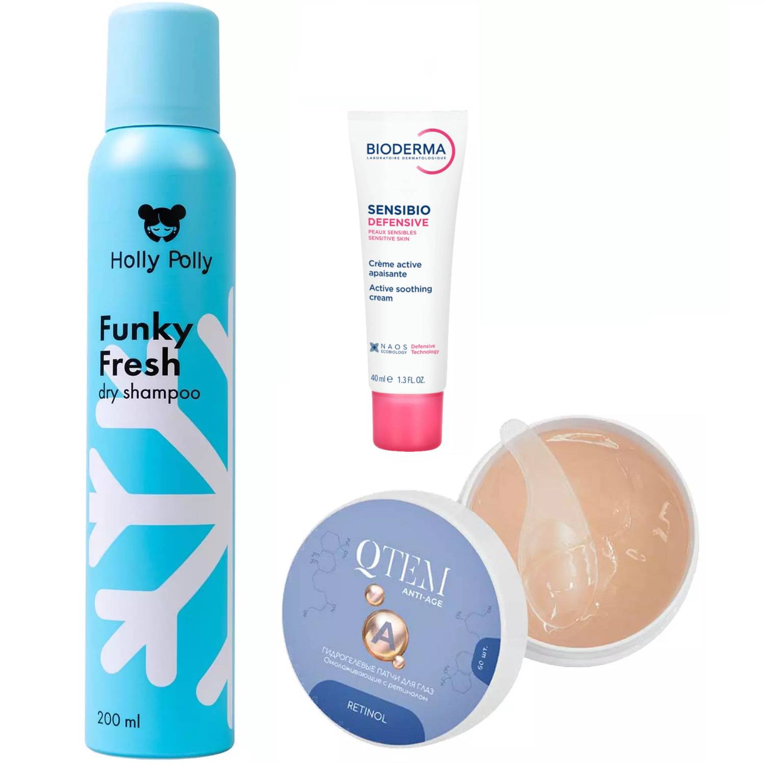 Патчи: ретинол, гиалуроновая кислота, глицерин, гликоген, каррагинан, пантенол, альгин.