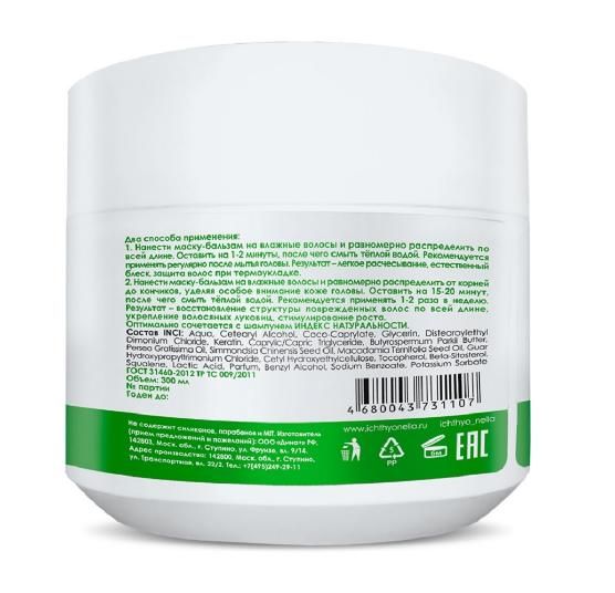 Натуральная формула без силиконов объединяет сразу два уходовых средства для волос – бальзам и маску. Восстановление происходит благодаря «умному» кератину, который распознаёт повреждённые участки волоса и встраивается в них. В зависимости от длительности нанесения продукт подходит как для ежедневного кондиционирования волос, так и для периодического глубокого восстановления. Не содержит силиконов, парабенов и MIT. Не тестируется на животных.