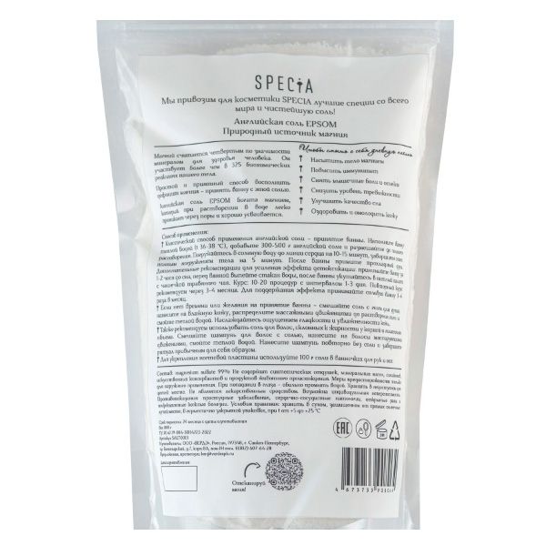 Английская соль или "горькая соль" - это минеральное соединение в составе которого содержится сульфат магния и сера. Ванны с магниевой солью рекомендованы для снижения проявлений стресса, нормализации сна, уменьшения боли в суставах и мышцах, в программах реабилитации после перенесенной короновирусной инфекции. Ванны с английской солью способствуют выведению токсинов из организма, уменьшения покраснения кожи, выводят жидкость из организма, способствуют восполнению дефицита магния в организме.