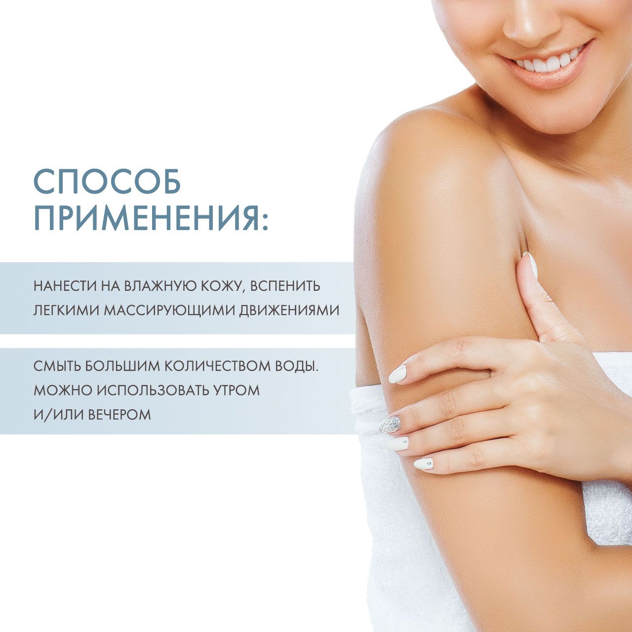 Нанести на предварительно увлажненную кожу, вспенить легкими массирующими движениями. Смыть большим количеством воды. Можно использовать утром и/или вечером.